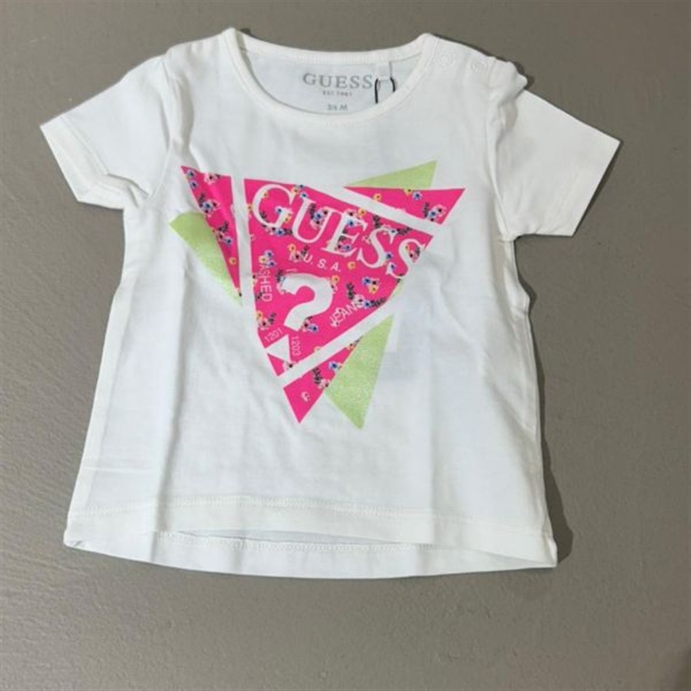 guess t-shirt bianca con logo fucsia