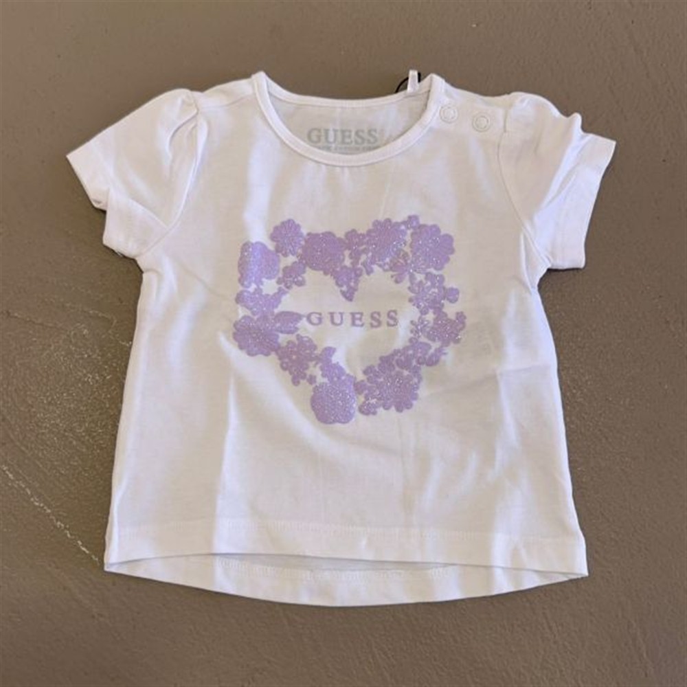guess t-shirt bianca con logo lilla