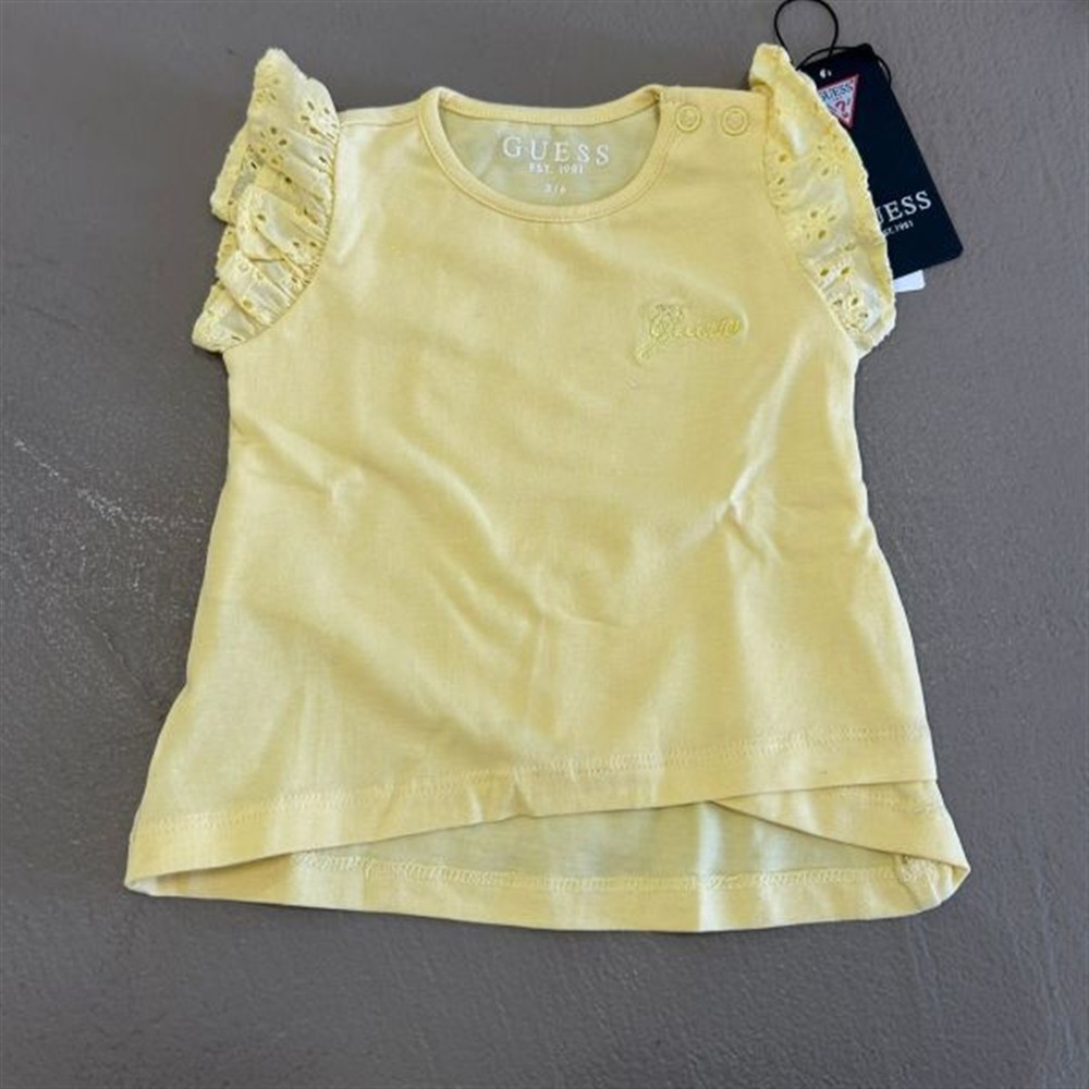 guess t-shirt gialla maniche ricamate