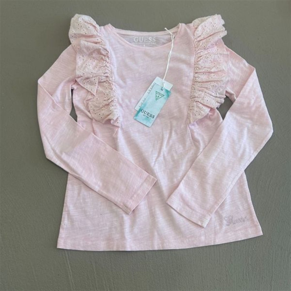 guess t-shirt rosa con ricamo